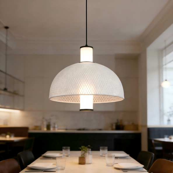 2025 میلان یورولوس نمائش میں جدید ڈیزائن کے رجحانات سے متاثر ہوکر ، مضبوط لائٹنگ سے یہ کم سے کم اطالوی ریشم میش پینڈینٹ لیمپ بغیر کسی رکاوٹ کے اطالوی معدنیات کو عملی فعالیت کے ساتھ ملا دیتا ہے۔ مرکزی 15W ایل ای ڈی لائٹ ماخذ 4000K غیر جانبدار روشنی کا اخراج کرتا ہے ، جس سے آرام دہ اور پرسکون ماحول پیدا ہوتا ہے۔ 1500lm کی چمک اور RA> 80 کی ایک اعلی رنگین پیش کش انڈیکس کے ساتھ ، روشنی قدرتی اور سچی زندگی کی زندگی ہے ، جس سے یہ رہائشی کمروں ، کھانے کے کمرے اور دیگر جگہوں کے ل suitable موزوں ہے۔ گول محراب کے سائز کا لیمپ شیڈ سفید ریشمی تانے بانے کے گرد لپیٹے ہوئے لوہے کے میش سے بنا ہوا ہے ، اور دھندلا سیاہ ہارڈ ویئر ساخت کو شامل کرنے کے لئے اسپرے پینٹ کے عمل کے ساتھ ختم ہوجاتا ہے۔ آسان ڈیزائن آسانی سے نورڈک ، جدید اور دیگر گھریلو طرزوں میں ضم ہوجاتا ہے۔